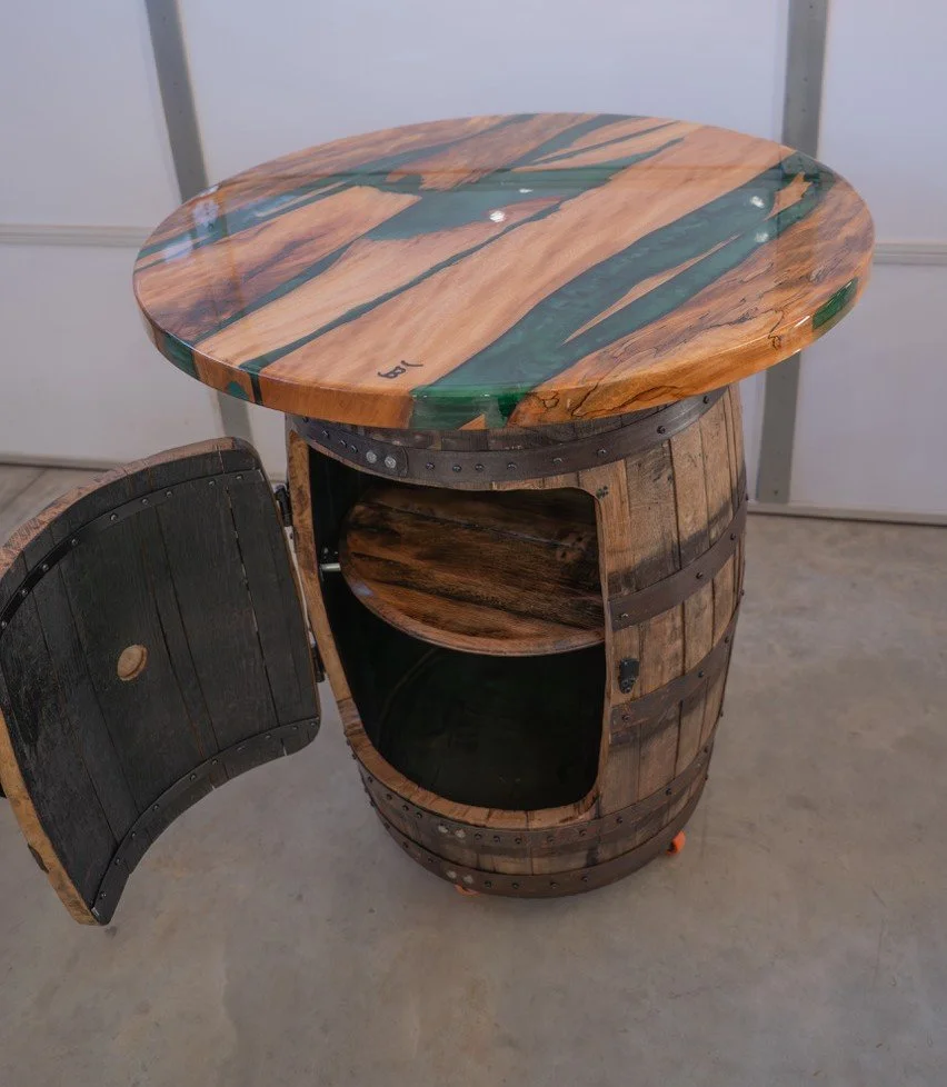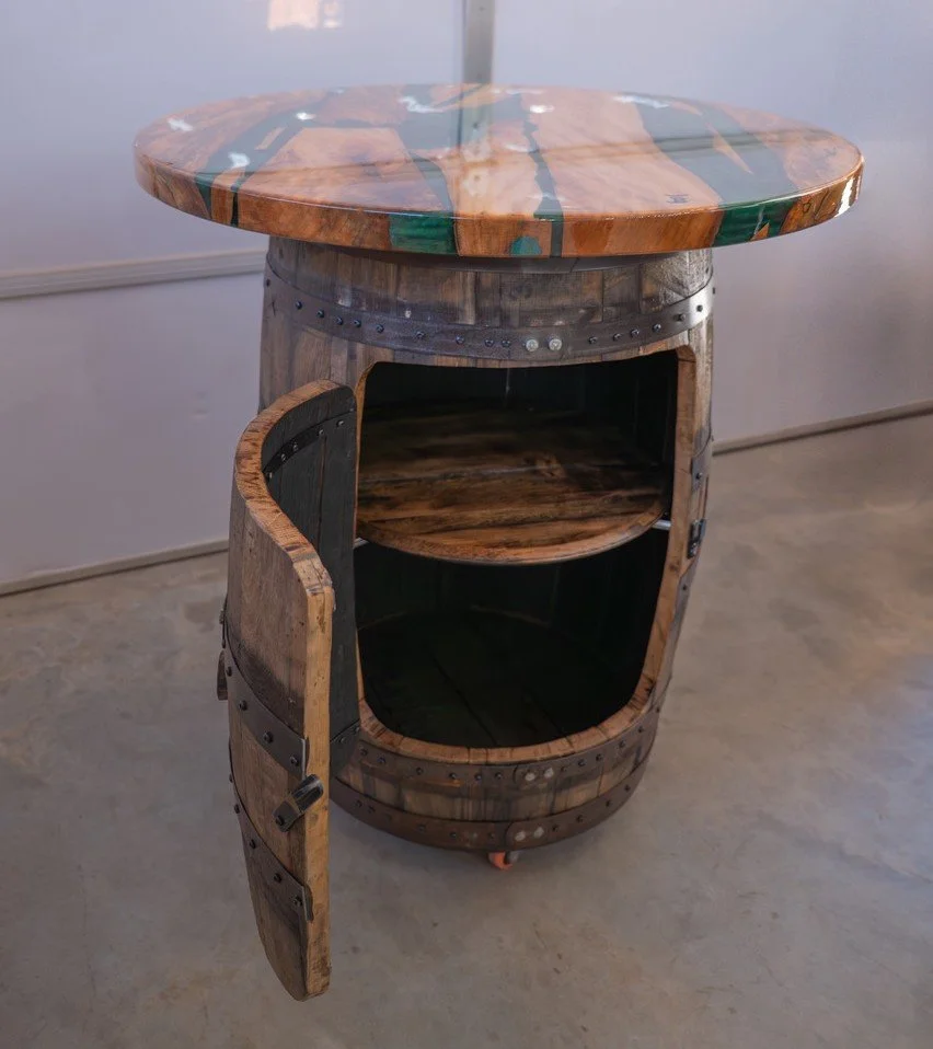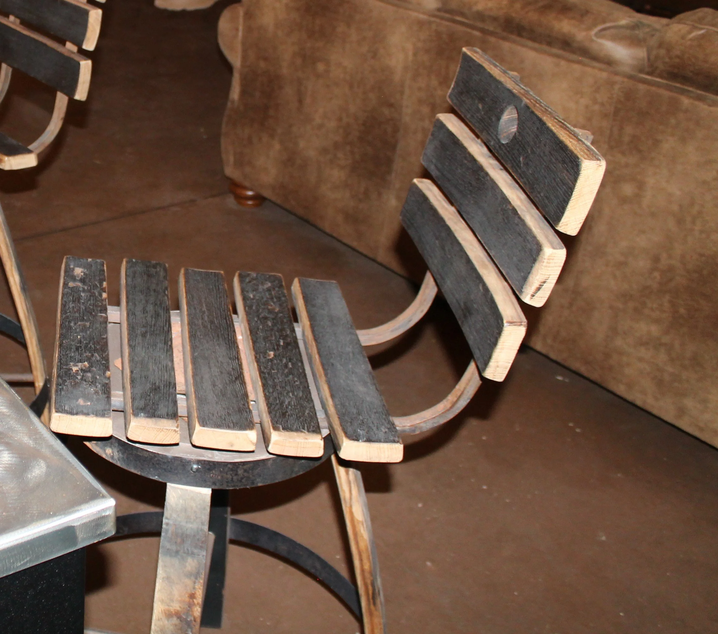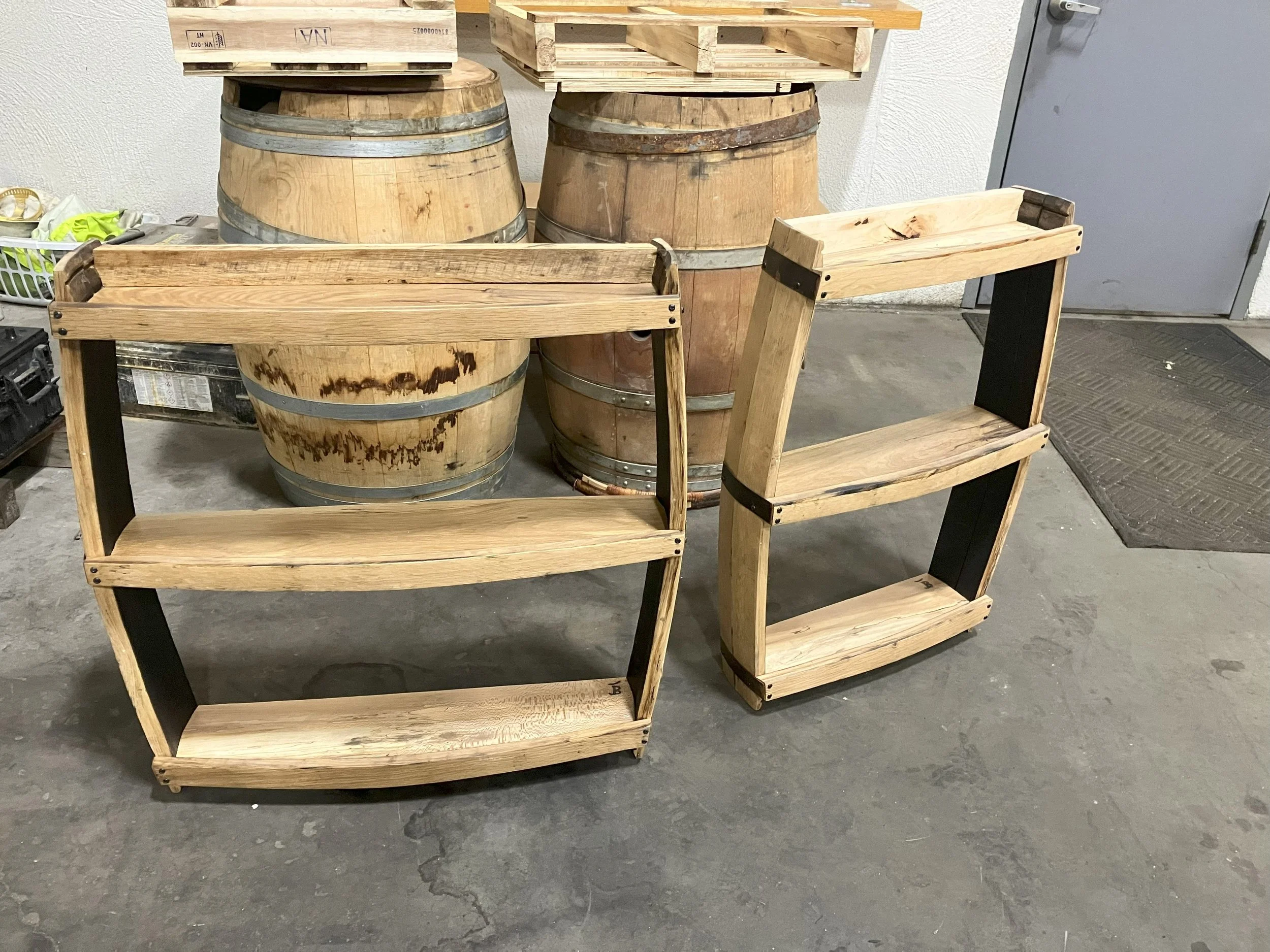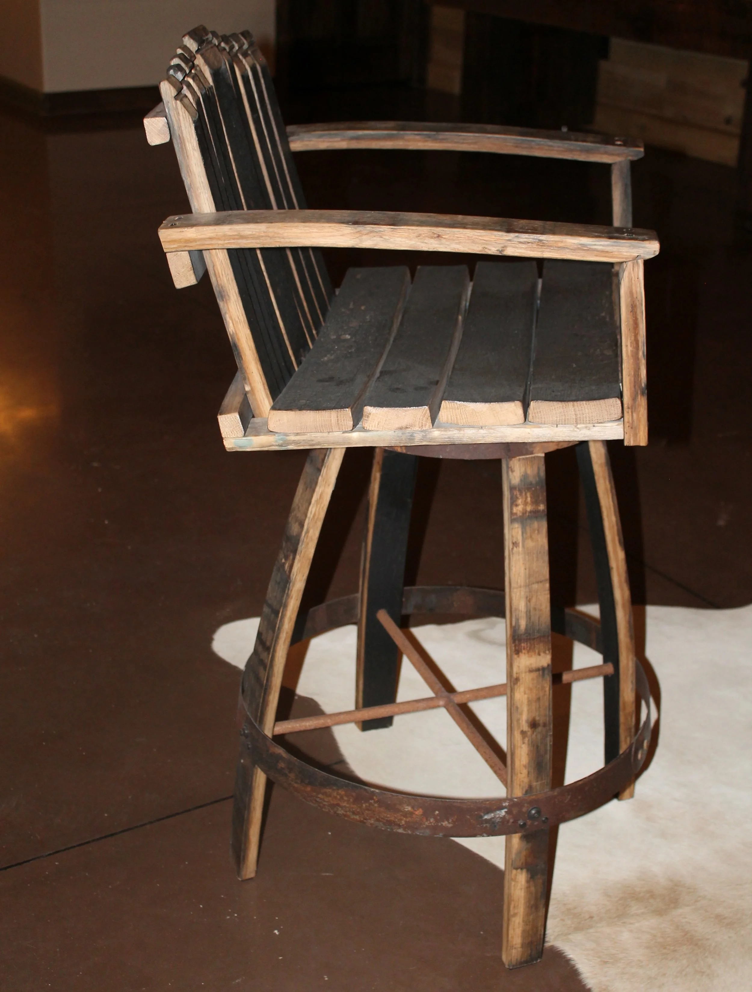Barrel Mount $270.00 Ring Toss Game $85.00 Stave Shelf $165.00 Barrel Head Corner Shelf $85.00 Bourbon Barrel Table $2,750.00 Captains Chair Swivel Barstool $395.00 Bourbon Barrel Stave Bar Stool $350.00