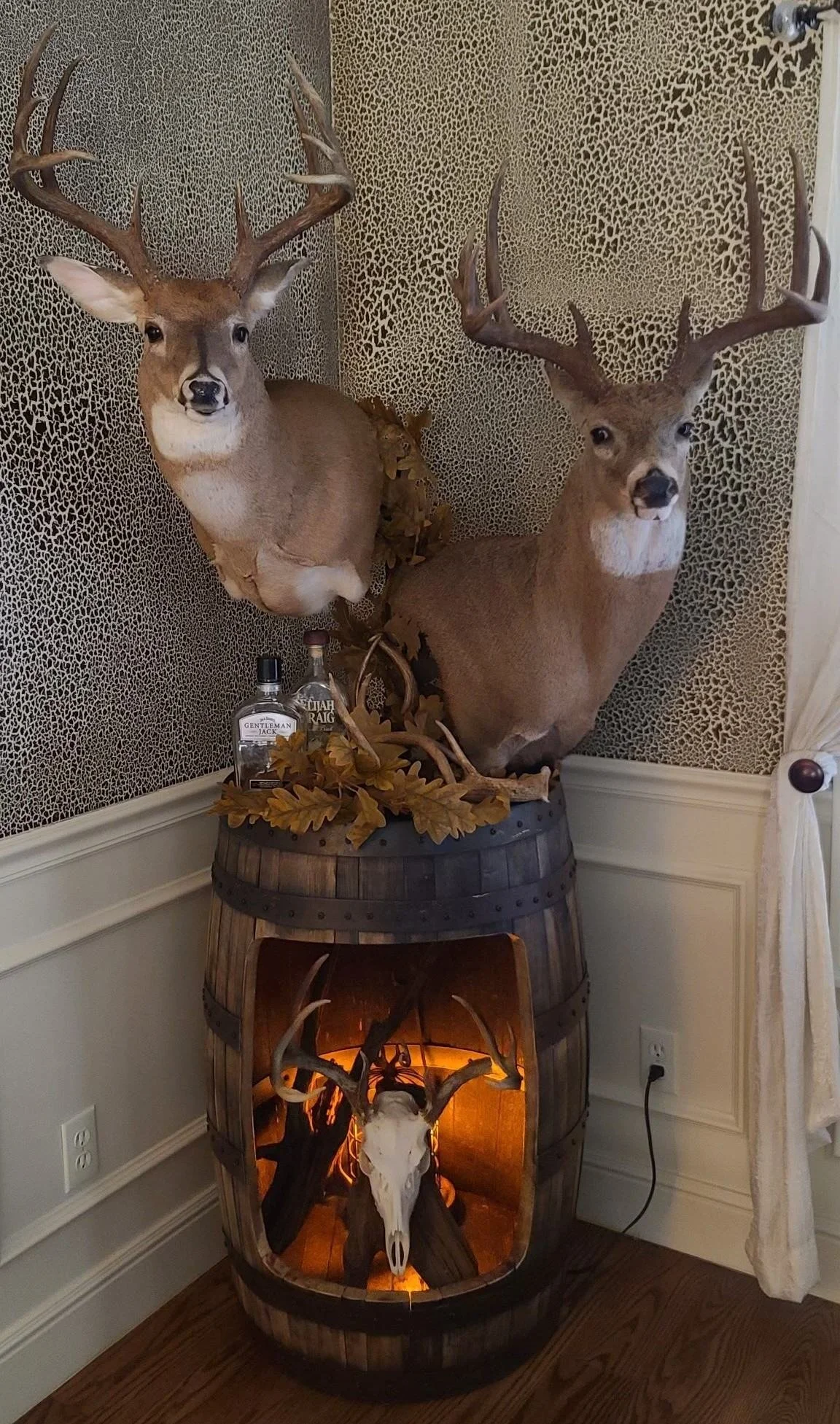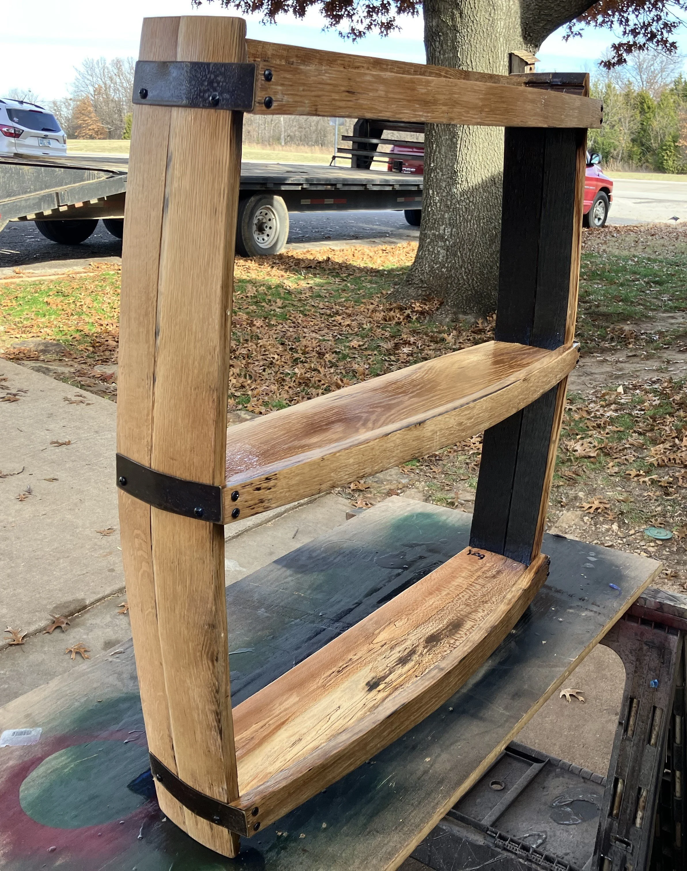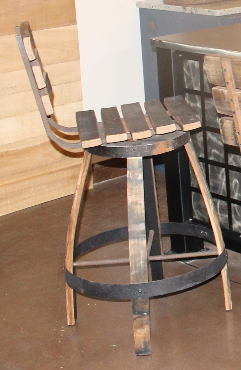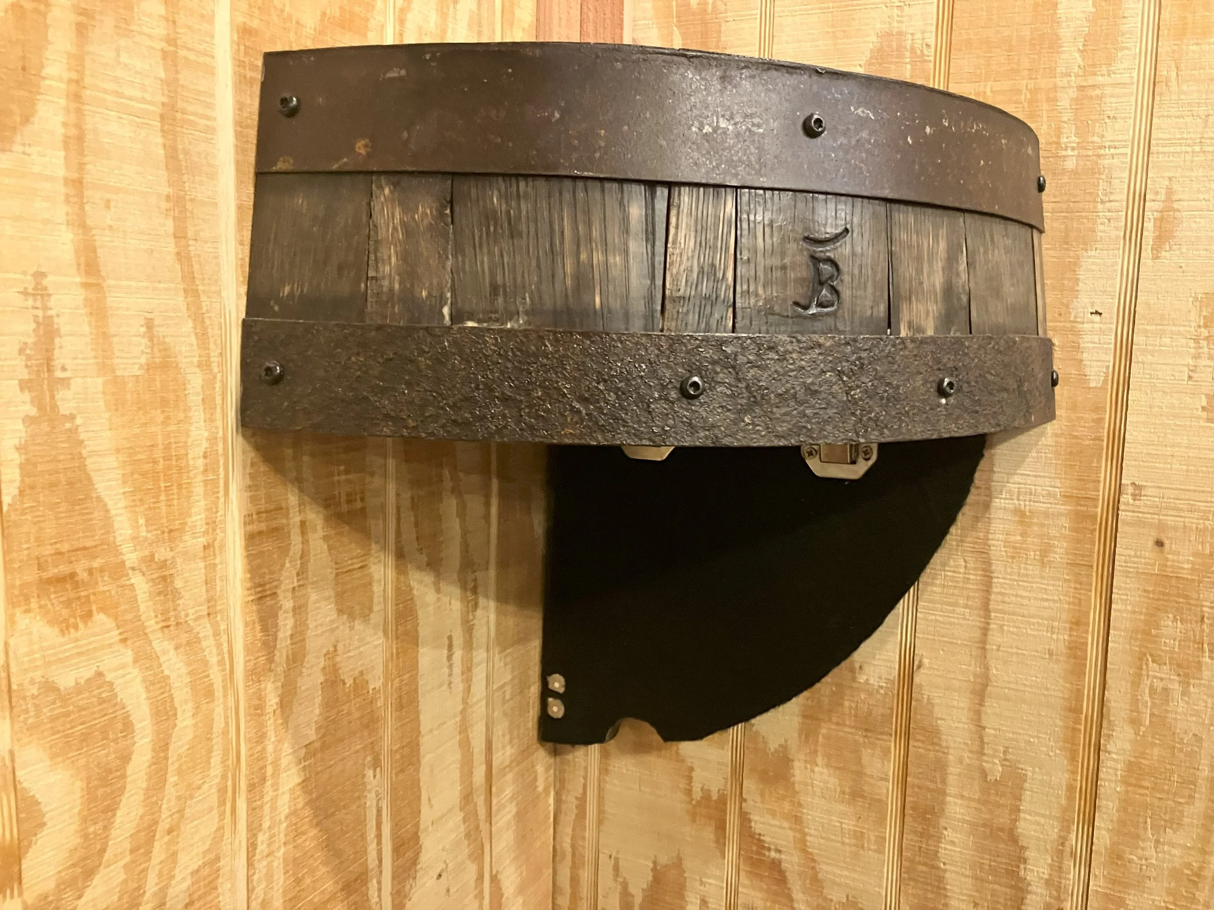 Barrel Mount $270.00 Ring Toss Game $85.00 Stave Shelf $165.00 Barrel Head Corner Shelf $85.00 Bourbon Barrel Table $2,750.00 Captains Chair Swivel Barstool $395.00 Bourbon Barrel Stave Bar Stool $350.00